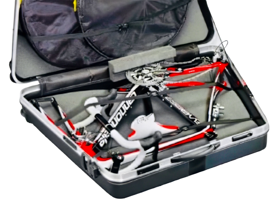 Utöver resa remmar finns flera mjuka skivor och bubbelplast att använda för att packa cykeln.